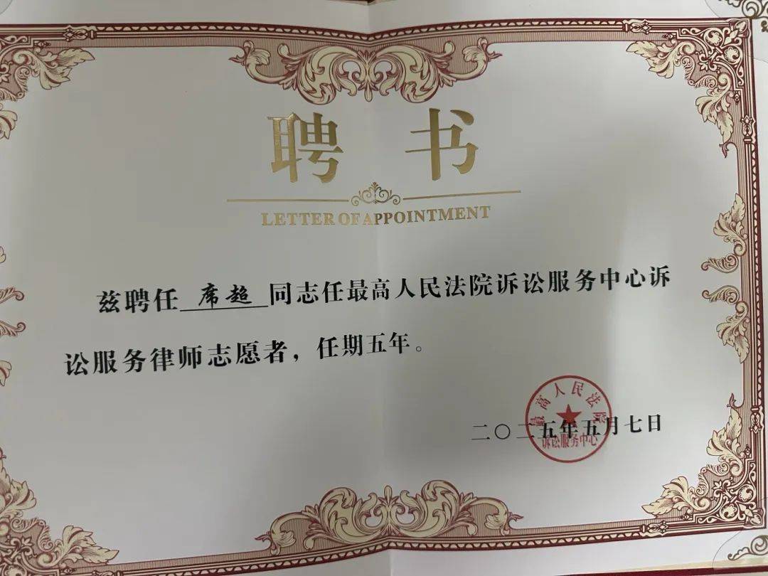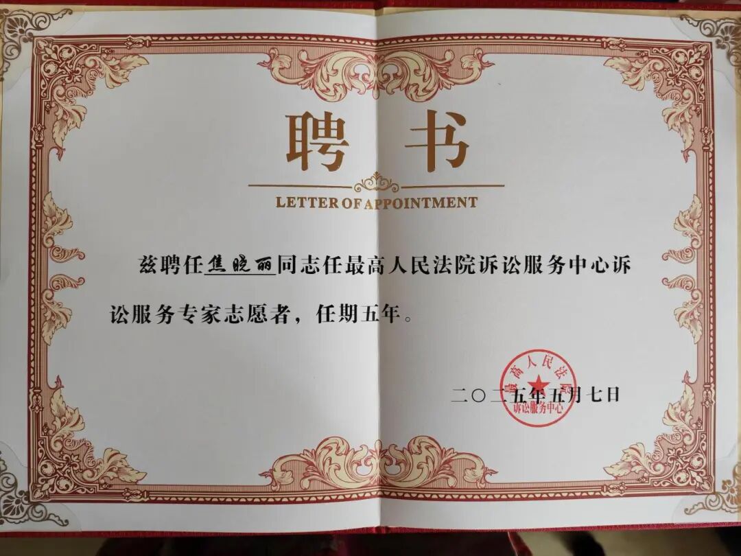 诉讼服务志愿专家机制既是律师群体履行社会责任的重要体现,也是积极响应司法部"五点希望"要求的公益实践创新。999彩票多位律师获聘最高人民法院诉讼服务中心志愿者不仅是对律师卓越专业能力的充分肯定,也充分展现了999彩票律师的责任担当,通过输送优秀法律人才参与司法实践,为推动法治进步贡献专业力量。